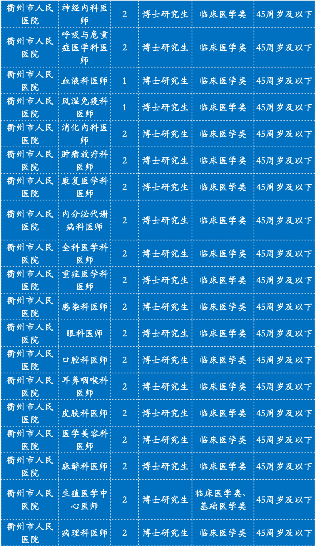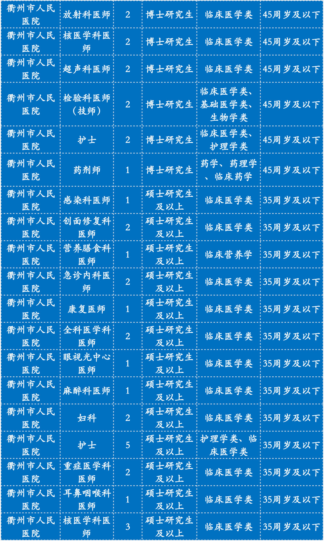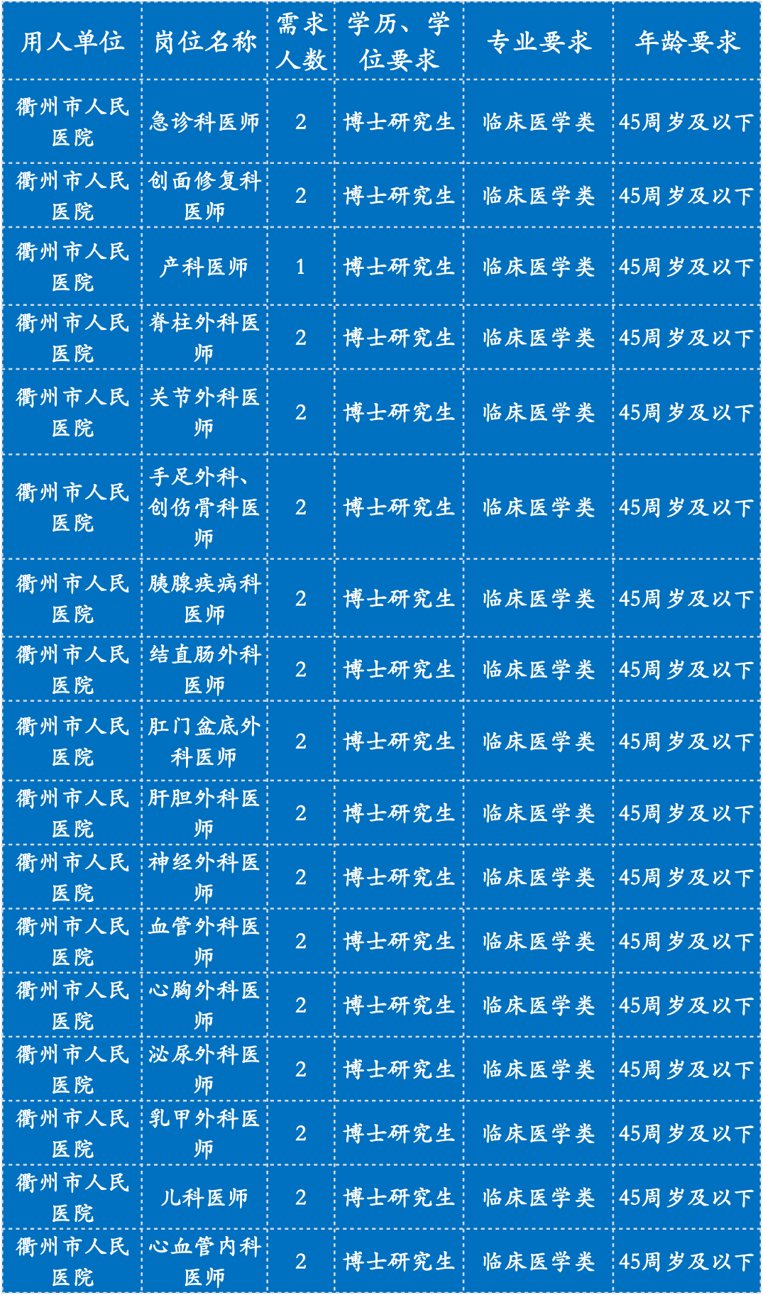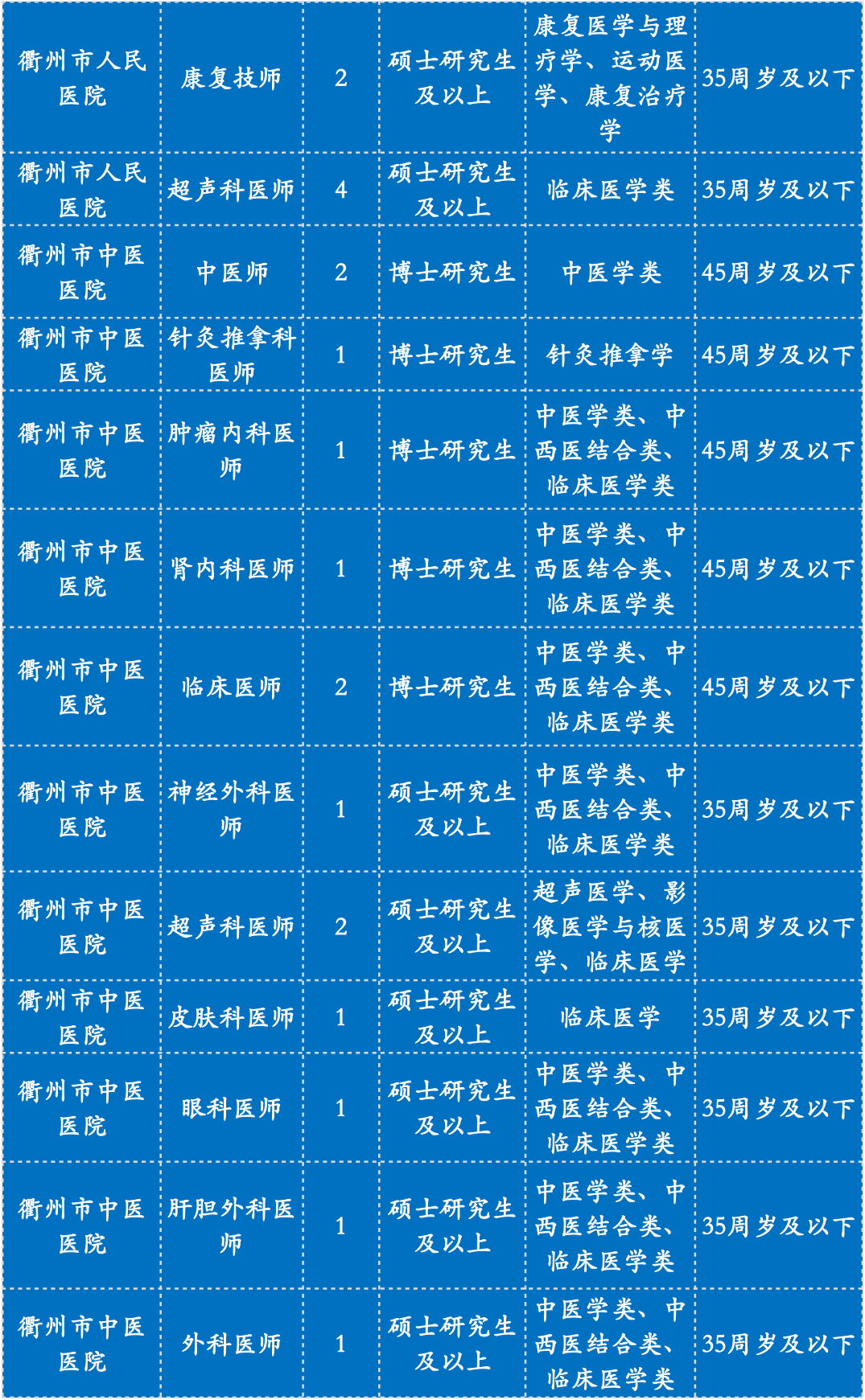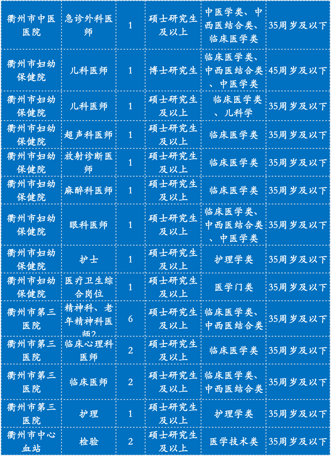 相关要求以2022年11月9日公布在衢州市政府门户网站市卫健委——部门公告公示栏中的《2023年衢州市卫生健康委员会“引才聚智‘医’起向未来”高层次医疗卫生人才招引公告》(第1期)为准。